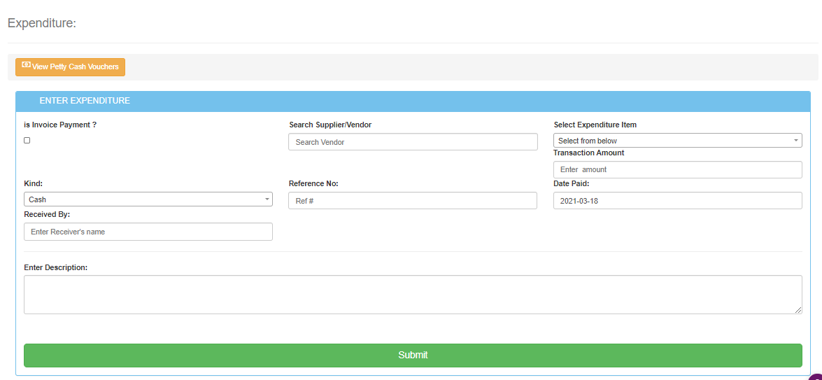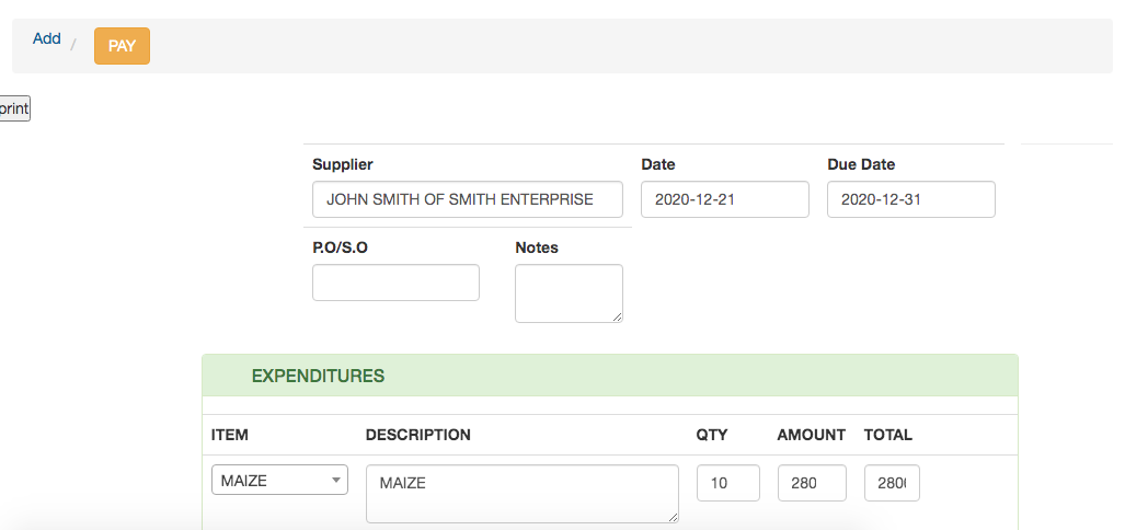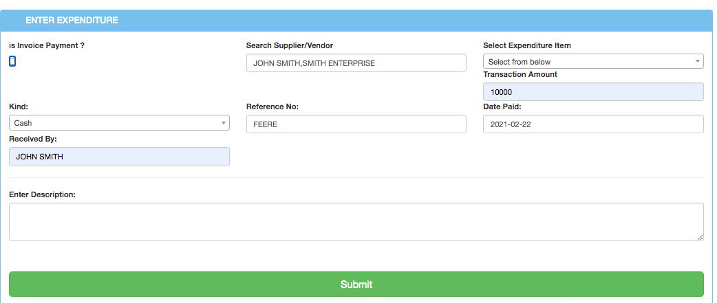 NOTE: You can record the various payment expenses here whether there is a supplier with an invoice or just a normal payment for those without the invoice.