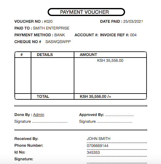 This will be saved on the payment voucher which can be printed and given to the person required.