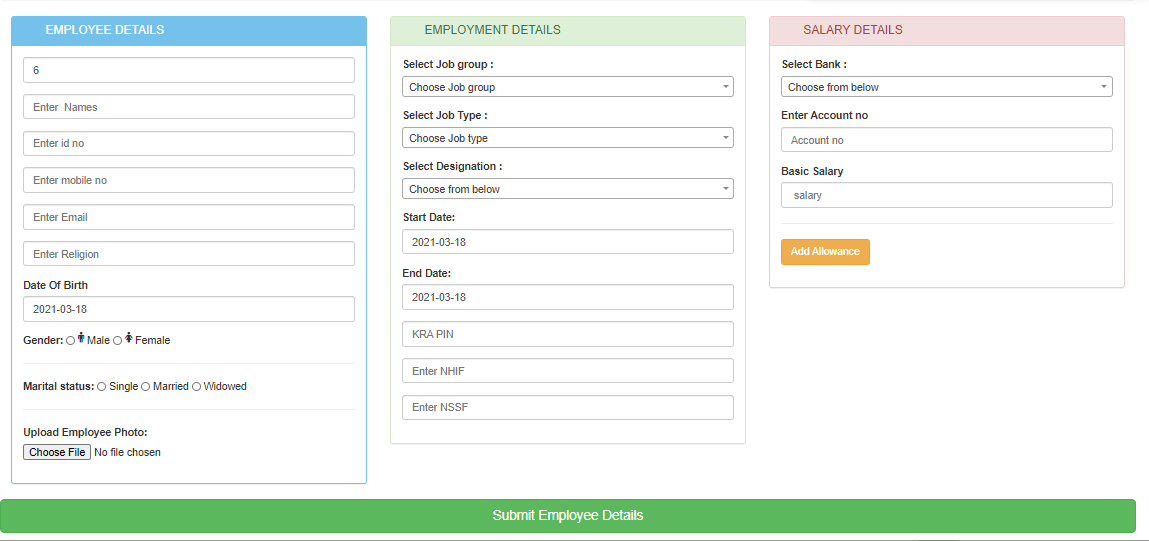 - You need to fill in the email address, KRA pin, NSSF, and NHIF in order to save the information. If the employee does not have this information then just enter dummy data and save it. Then you will deactivate the deductions under edit employee details.