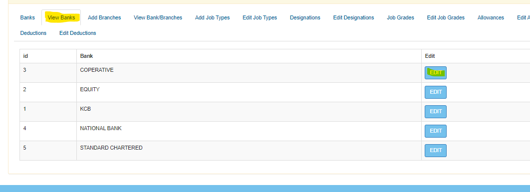 To view the banks created click on “View Banks”, you will be able to view the banks that have been saved,