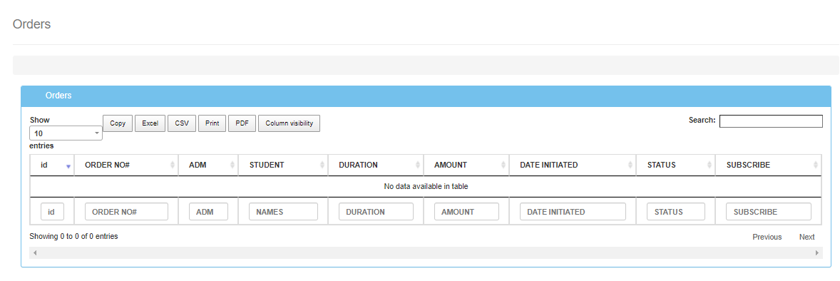 To view the orders in Click on “E-learning” then ” orders”