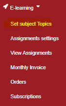 To set the subjects to be taken on the E-learning platform click on “E-learning” then “Set subject topics”