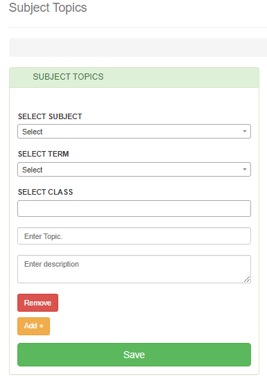Fill in the details of the subject in the form displayed, you can add as many subjects as needed by clicking on “Add”, then click on save to save the subject.
