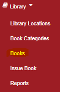 To add books in the library click “Library” then “Books”