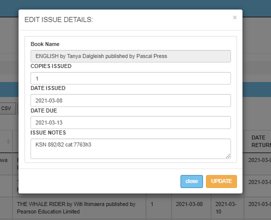 You will now be able to see the status of each book. Here you are also able to see the status of the books if returned or not returned. To return a book simply click on the return button.