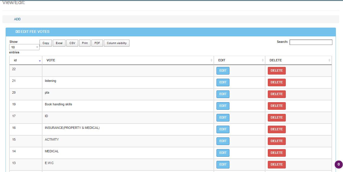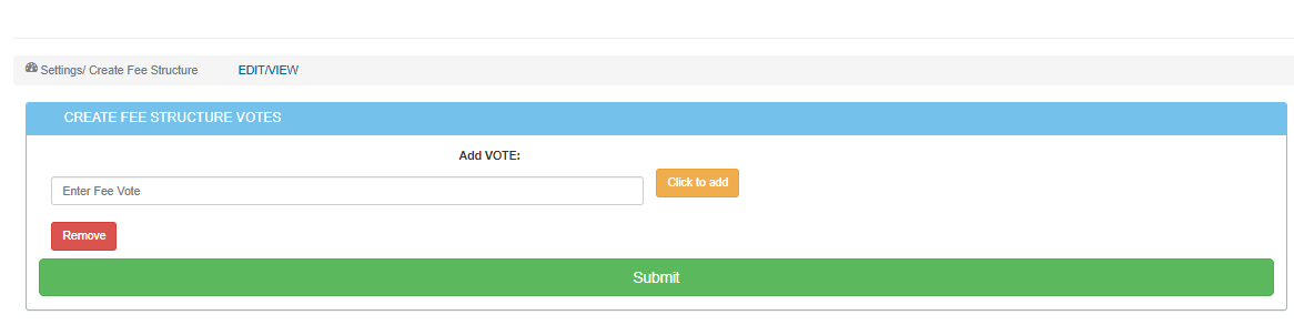 Click on “Add” and type in the fee vote then click on “Submit” to save the fee vote