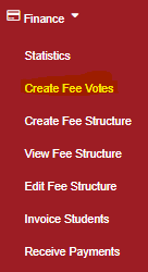 To create a fee vote in the fee structure click on “Finance” then “Create fee votes”