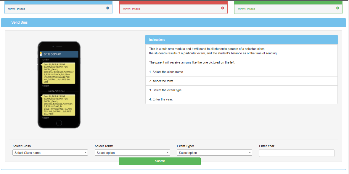 - This is a bulk SMS module and it will send to all student’s parents of a selected class