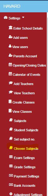 This allows you to see the subjects and which classes are taking the specified subjects, to do this go to settings and click “Choose subject”