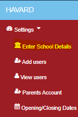 - Click on settings, click on “Enter school details” ie