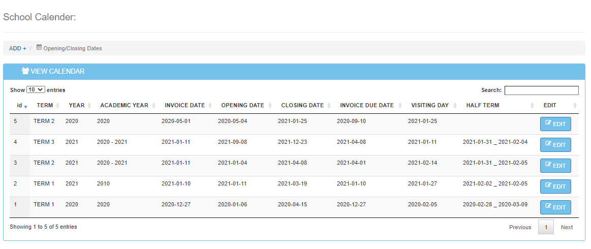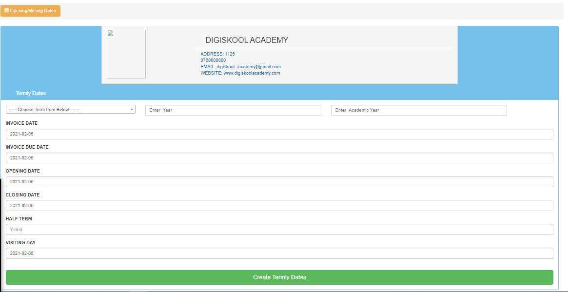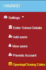 The closing and opening dates of the school calendar are recorded here, follow the instructions below.