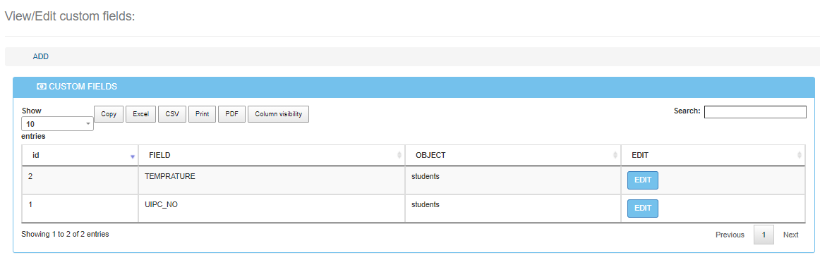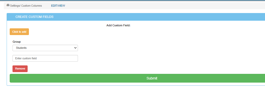Custom columns are useful when you need to add columns to your system(Things like adding the nemis number of students), to create a column follow the steps below.