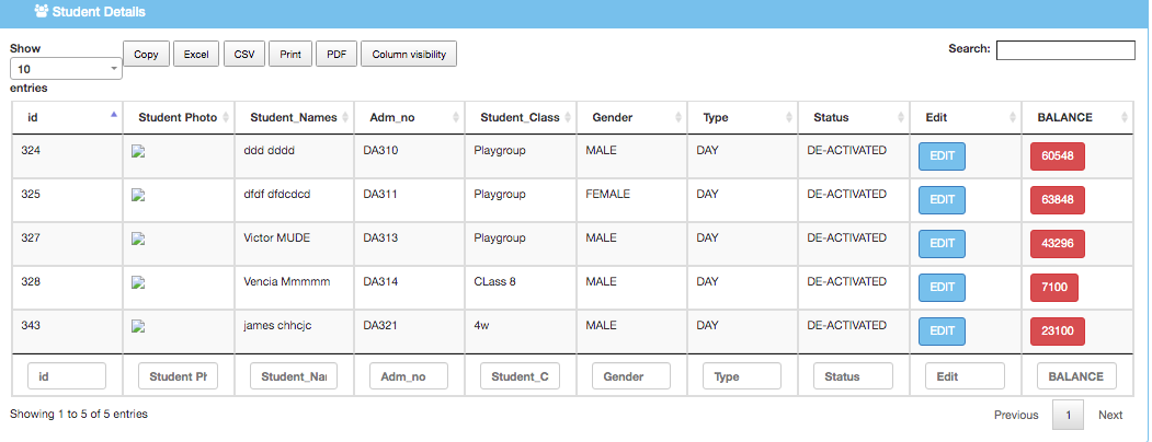 Go to Admissions => Inactive students to check and edit the inactive students.