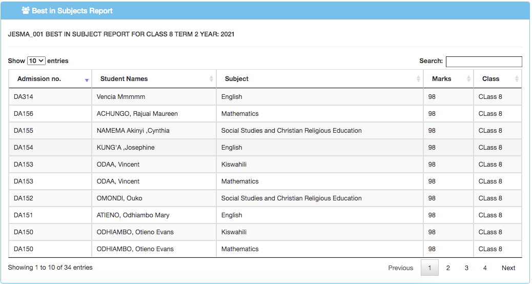 Click “Reports” then “Best in subjects”