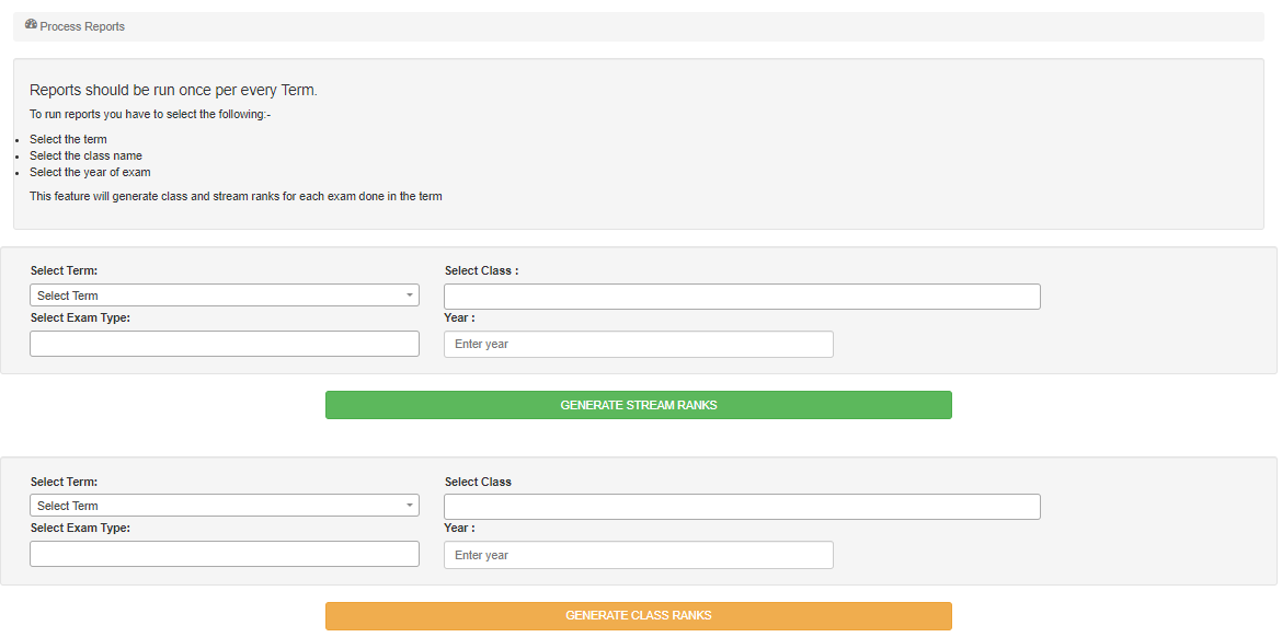 This feature will generate class and stream ranks for each exam done in the term