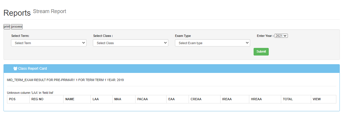- Click Submit when done to view the reports