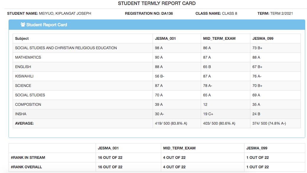 To view the termly report which will show you all the exams done in a certain term