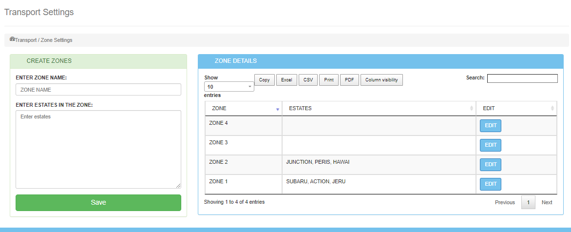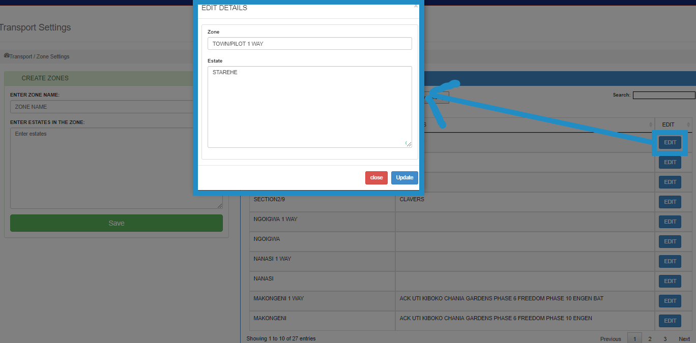 Click the edit button to change the zone names or the estate names.