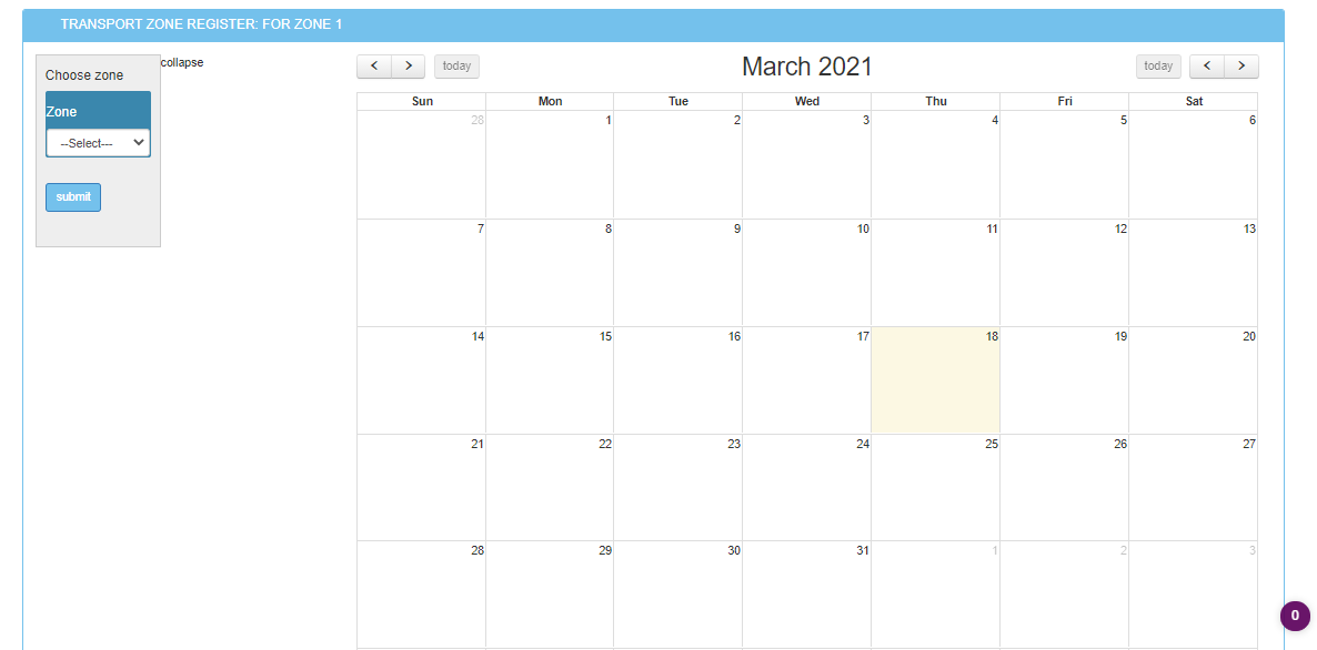 Here you will be able to view Each zone calendar;