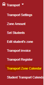 Click “Transport” then ” Transport zone calendar”